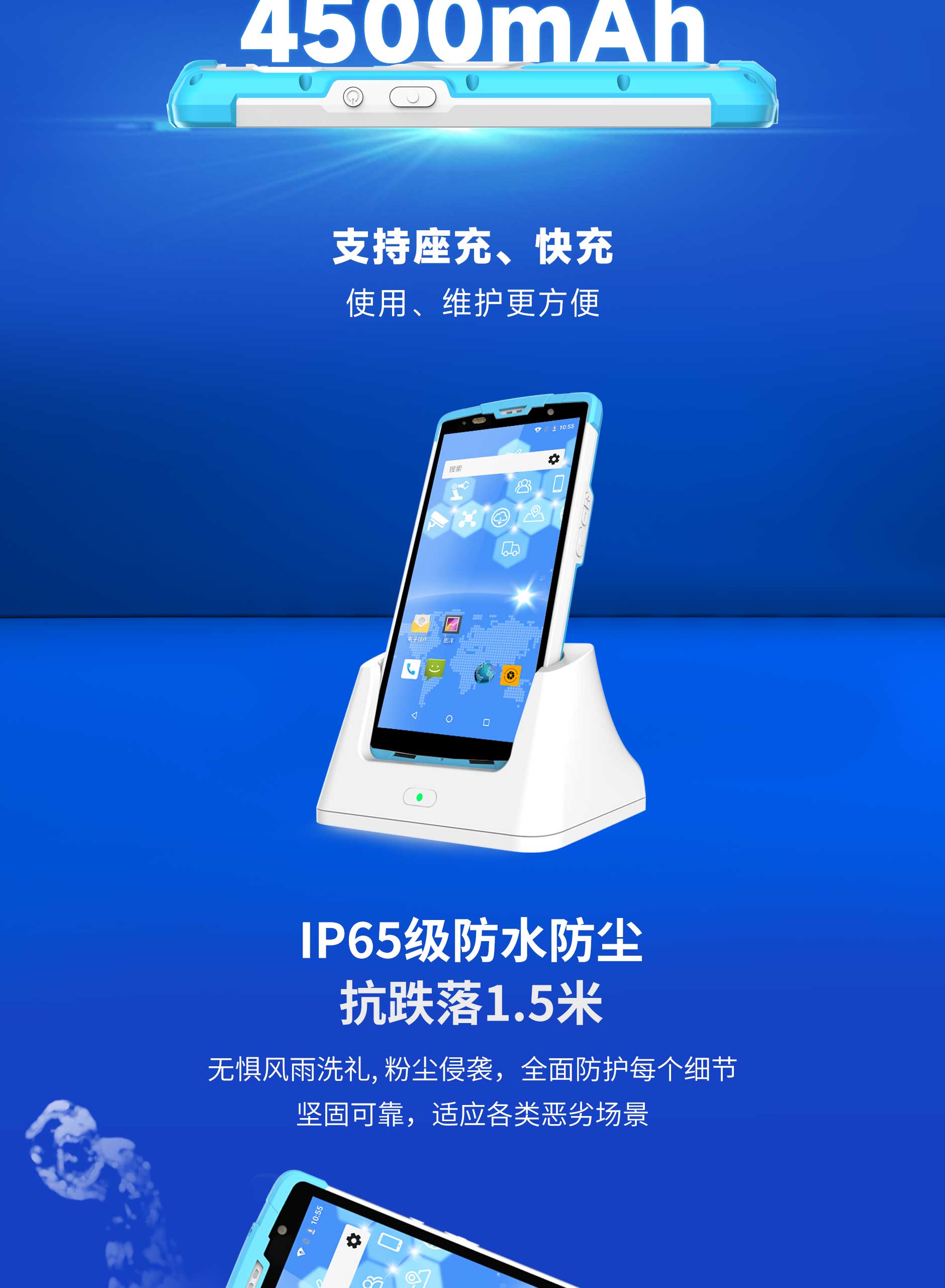 防護(hù) | IP65 防水防塵 1.5m抗跌落 |